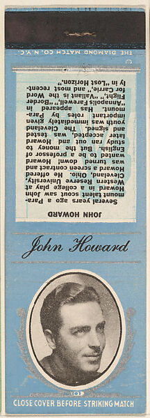 - Title:John Howard from Movie Stars Match Cover design series (U21) issued by Diamond Match Company