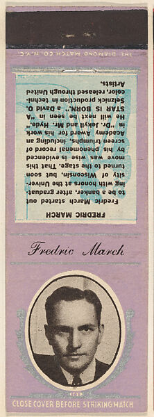 - Title:Fredric March from Movie Stars Match Cover design series (U21) issued by Diamond Match Company