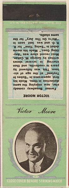 - Title:Victor Moore from Movie Stars Match Cover design series (U21) issued by Diamond Match Company