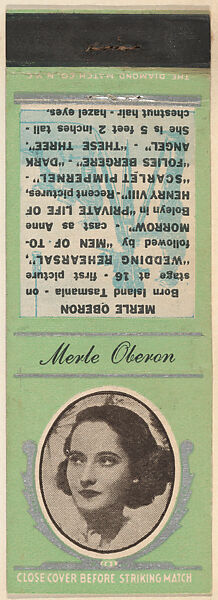 - Title: Merle Oberon from Movie Stars Match Cover design series (U21) issued by Diamond Match Company