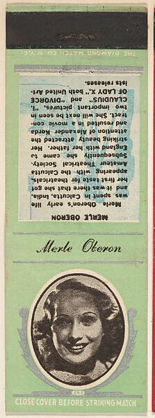 - Title:Merle Oberon from Movie Stars Match Cover design series (U21) issued by Diamond Match Company