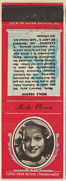 - Title:Merle Oberon from Movie Stars Match Cover design series (U21) issued by Diamond Match Company
