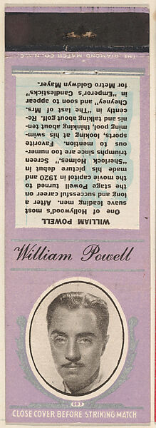 • Title: William Powell from Movie Stars Match Cover design series (U21) issued by Diamond Match Company