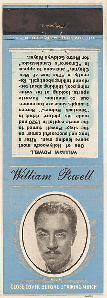 - Title: William Powell from Movie Stars Match Cover design series (U21) issued by Diamond Match Company