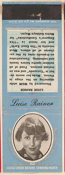 - Title: Luise Rainer from Movie Stars Match Cover design series (U21) issued by Diamond Match Company