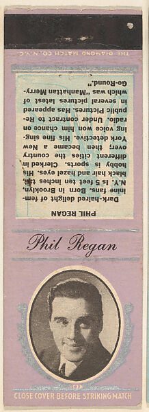 - Title: Phil Regan from Movie Stars Match Cover design series (U21) issued by Diamond Match Company