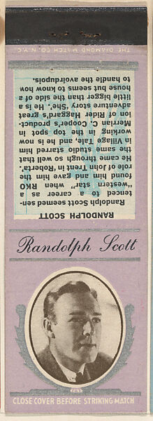 - Title: Randolph Scott from Movie Stars Match Cover design series (U21) issued by Diamond Match Company