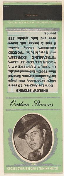 - Title: Onslow Stevens from Movie Stars Match Cover design series (U21) issued by Diamond Match Company