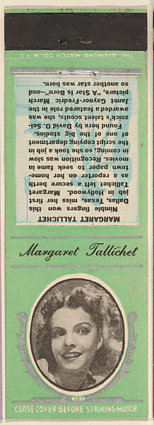 - Title: Margaret Tallichet from Movie Stars Match Cover design series (U21) issued by Diamond Match Company
