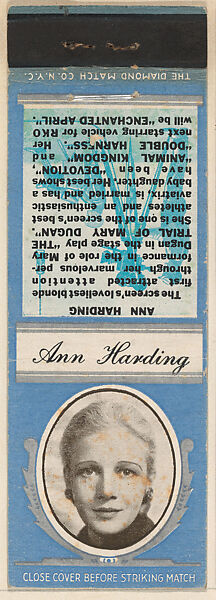 - Title: Ann Harding from Movie Stars Match Cover design series (U21) issued by Diamond Match Company