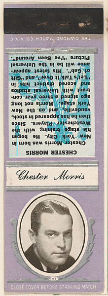 - Title: Chester Morris from Movie Stars Match Cover design series (U21) issued by Diamond Match Company