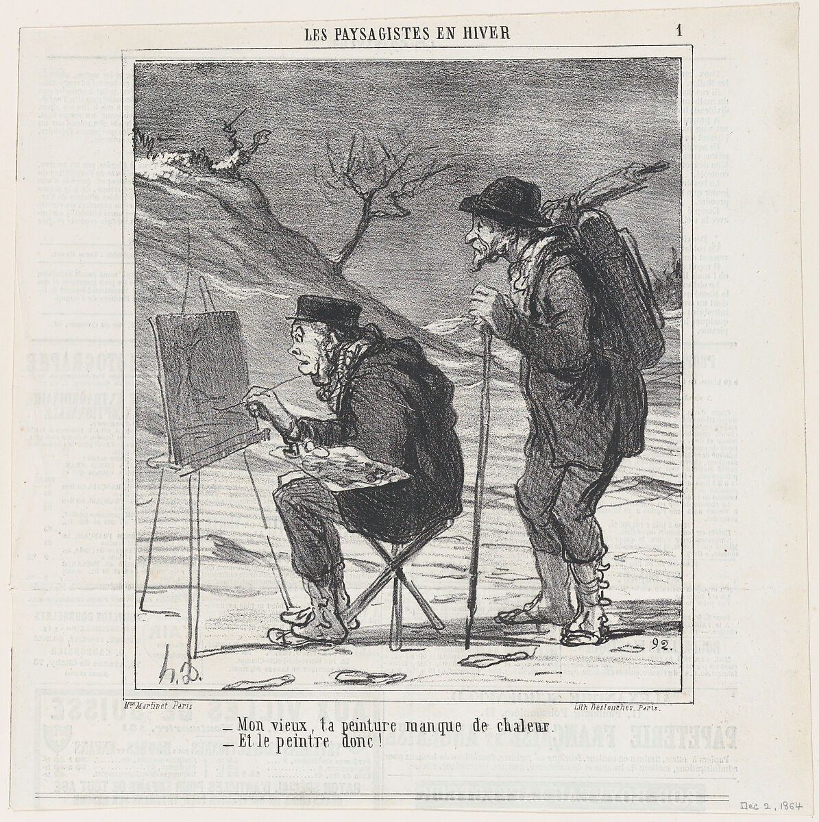 - Title: Old fellow, your painting lacks warmth, and the painter to be sure!, from 'The winter landscape painters,' published in Le Charivari, December 6, 1864