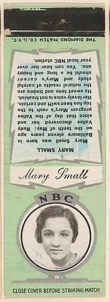 - Title:Mary Small from NBC Radio Stars Match Cover design series (U23) issued by Diamond Match Company