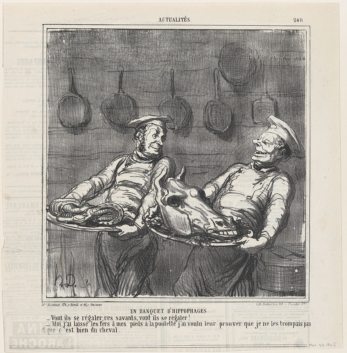 - Title:A horsemeat banquet, from 'News of the day,' published in Le Charivari, March 29, 1865