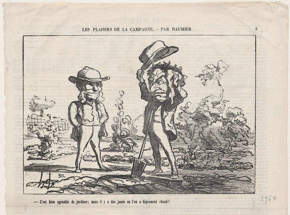 - Title:Working in the garden can be fun... but there are days when it is just too damn hot! / One rejoices in pure, unspoiled happiness when harvesting one's own apples... at least as long as one doesn't break one's neck, from "The joys of country life"