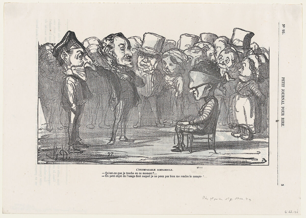 - Title: The incomparable somnabulist," from 'Memories of the celebration at St. Cloud,' published in Le Petit Journal pour Rire, September 16, 1865