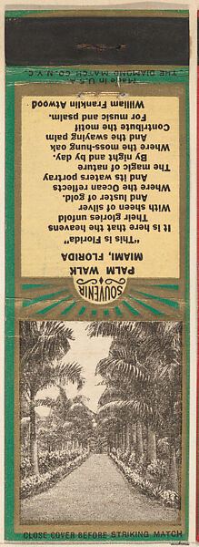 - Title:Palm Walk, Miami from Florida, Souvenir Views Match Cover series (U40.5)