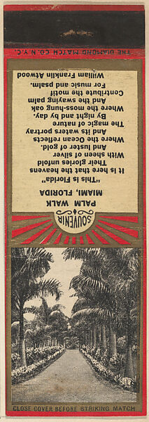 - Title:Palm Walk, Miami from Florida, Souvenir Views Match Cover series (U40.5)
