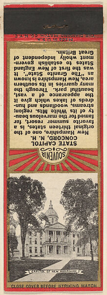- Title:Capitol of New Hampshire from New England, Souvenir Views Match Cover series (U40.7)
