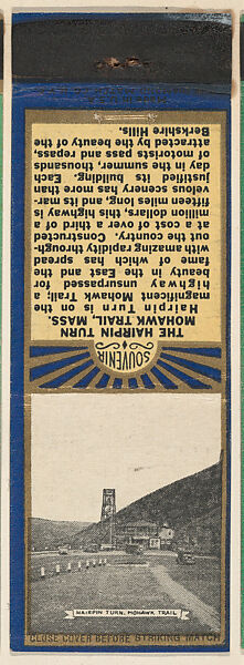 - Title: Hairpin Turn, Mohawk Trail from New England, Souvenir Views Match Cover series (U40.7)
