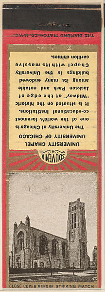 - Title:University Chapel, University of Chicago from Chicago, Souvenir Views Match Cover series (U40.3)