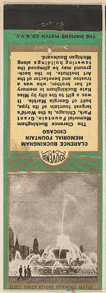 - Title: Clarence Buckingham Memorial Fountain from Chicago, Souvenir Views Match Cover series (U40.3)