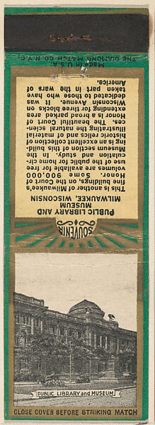 Public Library and Museum from Milwaukee, Souvenir Views Match Cover series (U40.9)