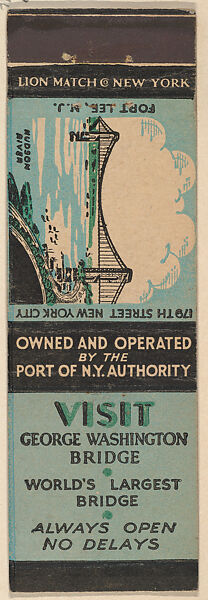 Matchbooks from N.Y. Port Authority, Souvenir Views Match Cover series produced ca. 1935–45 by Lion Match Company. Inside is more information, coupons, or advertising.