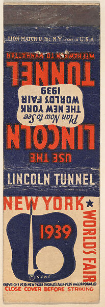 - Title:Lincoln Tunnel/1939 New York World's Fair from Port Authority of N.Y., Souvenir Views Match Cover series