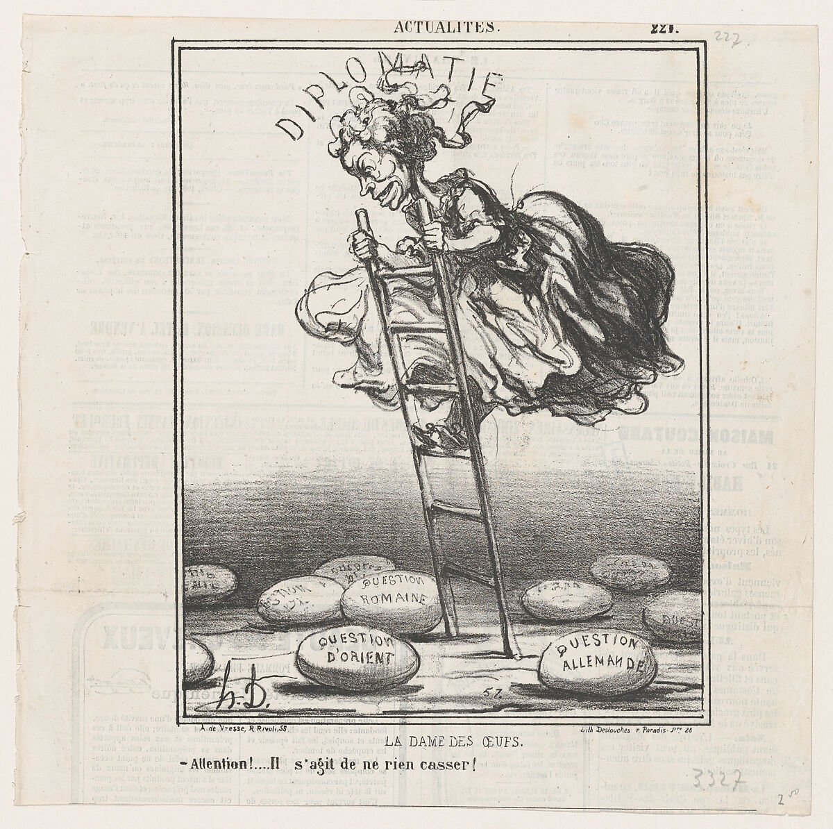 - Title:The lady of the eggs: Watch out! It's important not to break any of them!, from 'News of the day,' published in "Le Charivari"