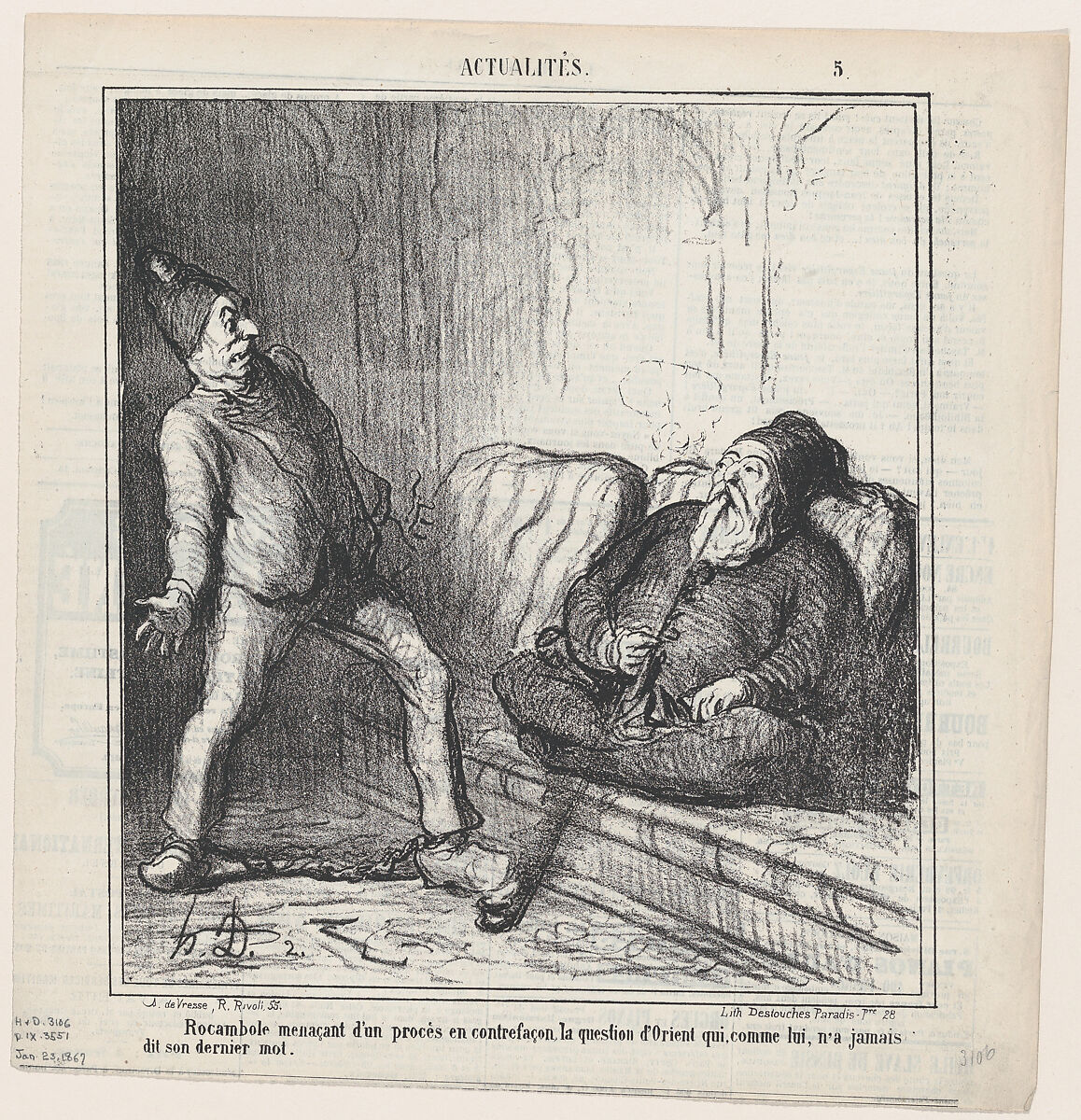 - Title: Rocambole threatening to start a process without end, covering the Oriental question. Since he never finishes anything, chances are that the process also will never be finished, from "News of the Day"