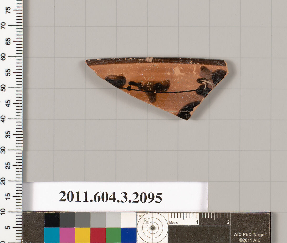 - Title: Terracotta rim fragment of a kylix (drinking cup)