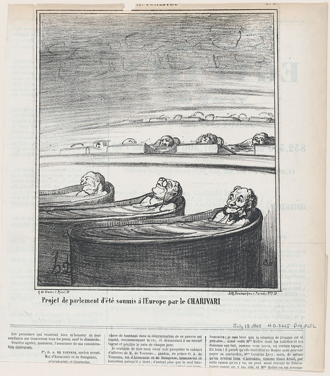 - Title: Idea for summer parliament submitted to Europe by the Charivari, from 'News of the day,' published in Le Charivari, July 13, 1868