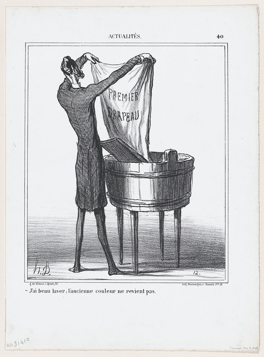 - Title: I can wash as much as I want, the old color won't come back, from 'News of the day,' published in "Le Charivari"