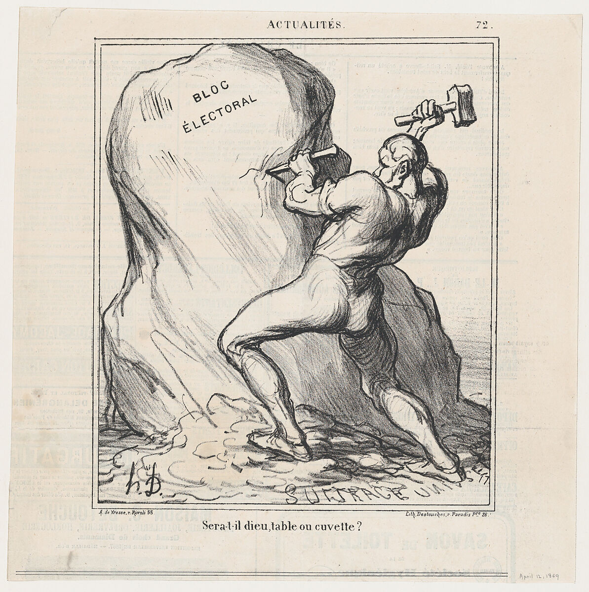 Will he be God, a table, or a basin?, from 'News of the day,' published in Le Charivari, April 12, 1869
