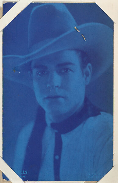 From Western Stars or Scenes Exhibit cards series (W412). Distributed by Exhibit Supply Company of Chicago. Postcard-sized thick card. Dispensed in arcade machines. Blue toned.