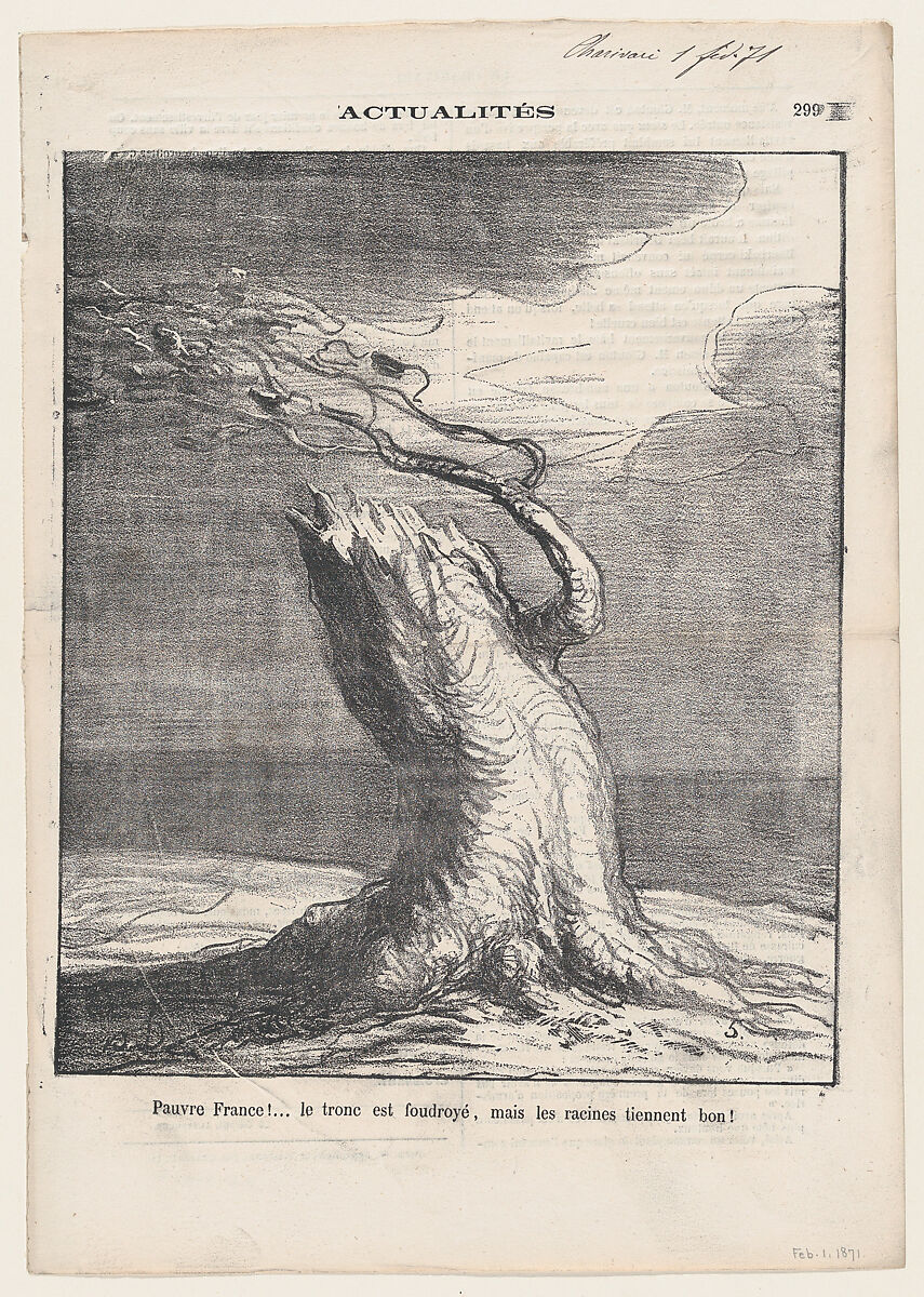 - Title: Poor France... the trunk was struck by lightning, but the roots hold fast, from 'News of the day,' published in Le Charivari, February 1, 1871