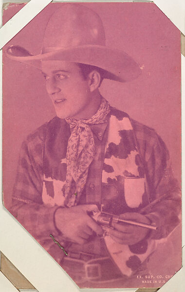 From Western Stars or Scenes Exhibit Cards series (W412). Distributed by Exhibit Supply Company of Chicago, Mutoscope or other companies. Postcard-sized thick card. Dispensed in arcade machines. Pink toned.