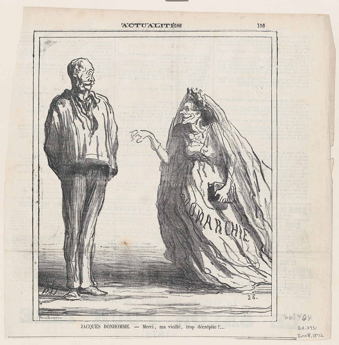 • Title: Jacques Bonhomme: Sorry, Madam, but you are really too decrepit!, from 'News of the day,' published in Le Charivari, June 8, 1872
