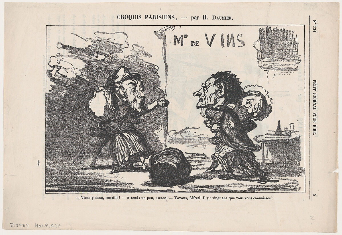 - Title: –Come on, you scoundrel, come on! –Just you wait, you crook! –Oh come on Alfred, after all you've known each other for some twenty years!, from 'Parisian sketches,' published in Le Petit Journal pour Rire, March 8, 1874