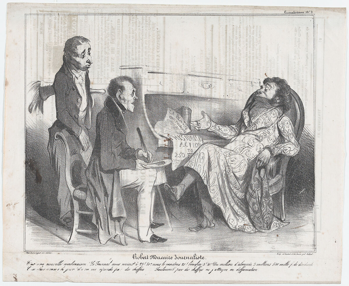- Title: Plate 3: Robert Macaire, journalist, from 'Caricaturana,' published in Le Charivari, September 10, 1836