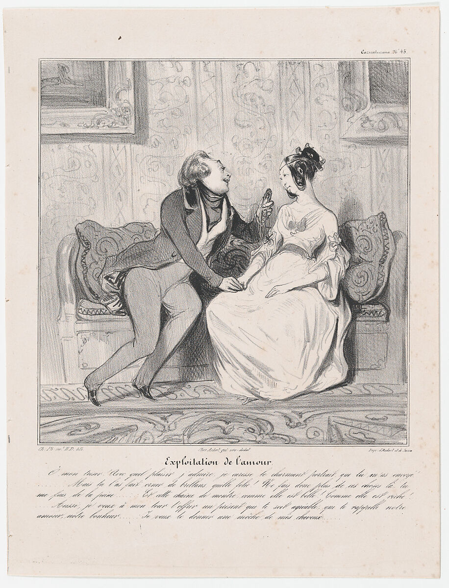 - Title: Plate 45: Exploitation of love, from 'Caricaturana,' published in Les Robert Macaires
