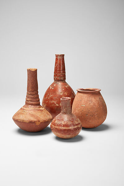 Thousands of tumuli, or man-made mounds, are found across Senegal, much of the Gambia, and Mali’s Middle Niger region. They range from stone or gravel mounds six to nine feet high to sand dunes of fifty or more feet. Twelfth-century Arab commentators on the Ghana empire noted that upon death, Ghana’s leader was buried within a mound accompanied by "his ornaments, armies, and the vessels from which he used to eat and drink." This selection of earthenware excavated from the Killi Tumulus represents an array of vessel types. In preparation for this exhibition, a scientific campaign sought to date these works more precisely, establishing that they were produced during the first half of the second millennium.