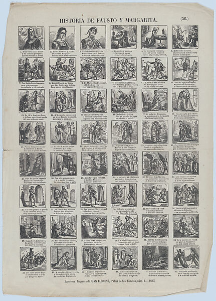 - Title: Broadside with 48 scenes illustrating the story of Faust and Marguerite