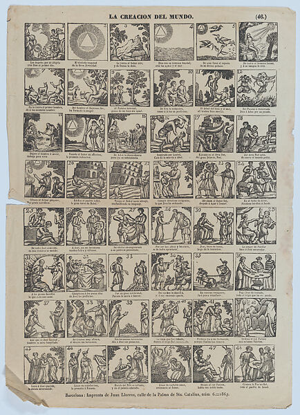 - Title: Broadside with 48 scenes illustrating the creation of the world