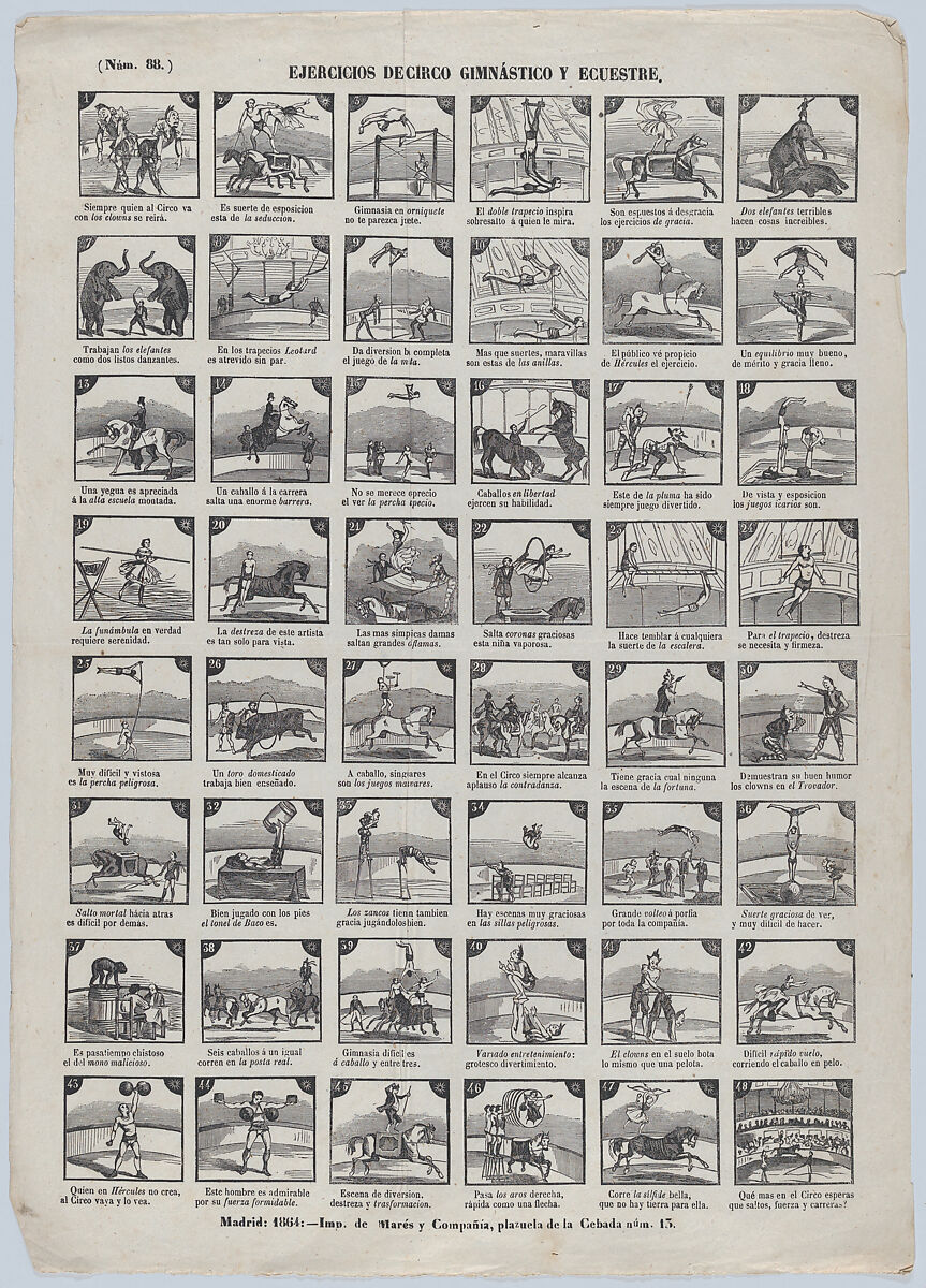 - Title: Broadside with 48 scenes depicting circus gymnastic and equestrian exercises