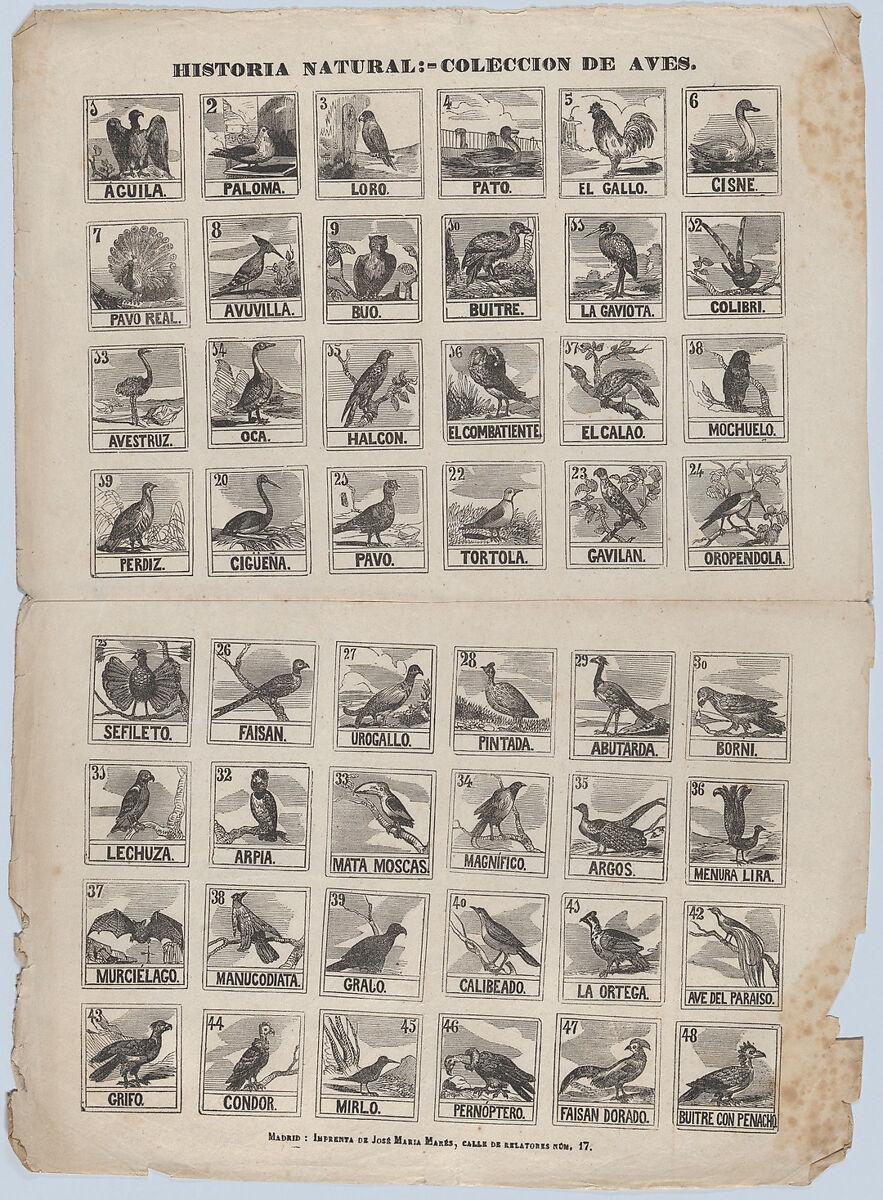 - Title: Broadside with 48 scenes of birds
