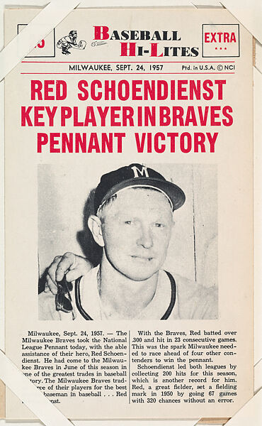 - Title:Red Schoendienst #25 from Nu-Card Baseball Hi-Lites series (W460)