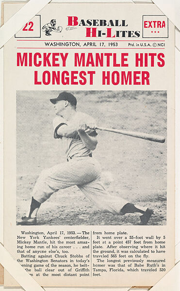- Title:Mickey Mantle #22 from Nu-Card Baseball Hi-Lites series (W460)