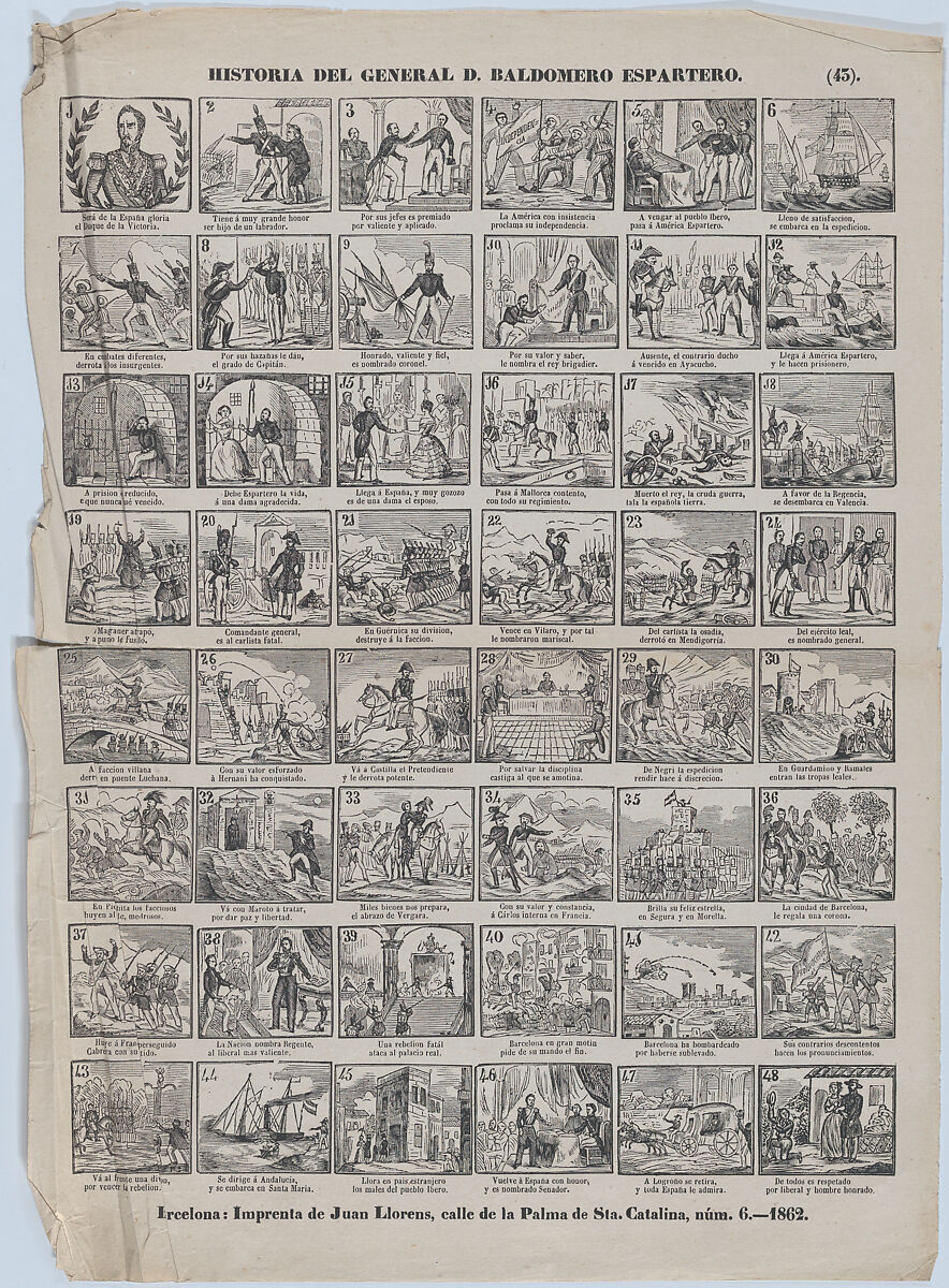 - Title:Broadside with 48 scenes relating to the life of General D. Baldomero Espartero